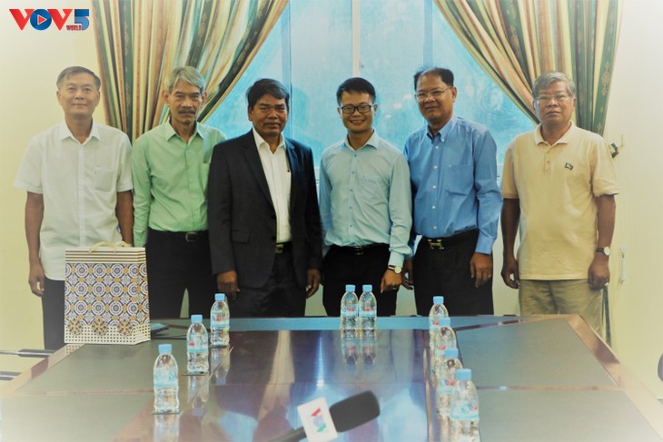 ទោះជាយើងខ្ញុំមកដល់ ១០ នាទី មុនពេលណាត់ជួបក៏ដោយ ប៉ុន្តែយើងខ្ញុំមានការភ្ញាក់ផ្អើលបន្តិចនៅពេលដែលរដ្ឋលេខាធិការ និងជាអតីតអគ្គនាយក លោក ទួលសារ៉ាត់ និងកម្មាភិបាលនៃវិទ្យុជាតិកម្ពុជាកំពុងទន្ទឹងរង់ចាំយើងខ្ញុំនៅខាងមុខវិទ្យុជាតិកម្ពុជា។ យើងខ្ញុំពិតជាមានអារម្មណ៍សប្បាយរីយរាយណាស់ ដោយសារខានជួបគ្នាយូរហើយ។ លើសពីនេះទៅទៀត យើងខ្ញុំពិតជារំភើបចិត្តណាស់ ដោយសារឃើញ រូបភាពនិងវត្ថុរាប់មិនអស់ដែលទាក់ទងនឹង VOVដែលត្រូវបានកម្មាភិបាលវិទ្យុជាតិកម្ពុជាថែរកក្សា និងតាំងបង្ហាញយ៉ាងយកចិត្តទុកដាក់។ នៅក្នុងពិធីជួបសំណេះសំណាល លោកតាន់យ៉ាន រដ្ឋលេខាធិការក្រសួង ព័ត៌មានកម្ពុជាបានចែករំលែកថា៖