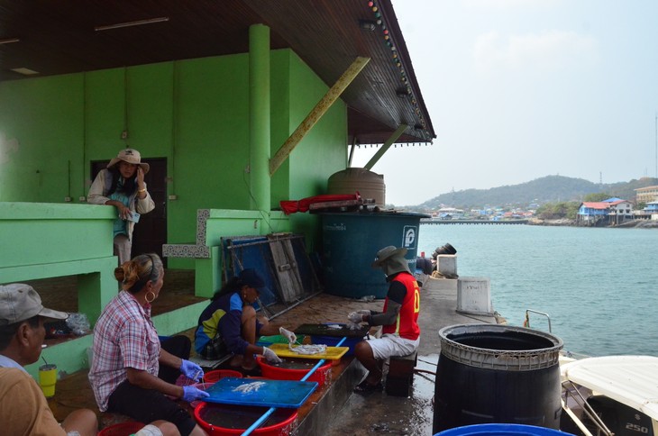 នៅវេលាម៉ោង ៣ ទៀបភ្លឺ នៅពេលដែលប្រជាជនភាគច្រើននៅលើកោះស៊ីឆាងកំពុងដេក លោកស្រី Phanomwan Punthavikirtikan បានចាប់ផ្តើមការងាររបស់ខ្លួន គឺការទិញគ្រឿងសមុទ្រនៅខាងក្រៅកំពង់ផែនេសាទ។ ពីមុនគ្រួសាររបស់លោកស្រី Phanomwan មានទូកនេសាទមួយ ប៉ុន្តែត្រូវបោះបង់ការងារដោយសារអាយុចាស់ជរា និងខ្វះកម្មករ។ បន្ទាប់មក លោកស្រី Phanomwan និងស្វាមីបានប្តូរទៅប្រកបមុខរបរទិញនិងកែច្នៃគ្រឿងសមុទ្រវិញ ដើម្បីលក់ឱ្យប្រជាជននៅកោះ និងភ្ញៀវទេសចរ។ ប្រជាជននៅកោះជាច្រើននាក់ដែលគ្មានការងារធ្វើ ក៏ត្រូវបានលោកស្រី Phanomwan និងស្វាមីជួលឱ្យធ្វើការកែច្នៃគ្រឿងសមុទ្រផងដែរ។ ជាចម្បង លោកស្រី Phanomwan និងស្វាមីប្រមូលទិញសត្វមឹក។ បន្ទាប់ពីប្រមូលទិញមឹកពីកំពង់ផែនេសាទរួច លោកស្រី Phanomwan នឹងធ្វើការកែច្នៃ រួចហាលសម្ងួតវាមុនពេលវេចខ្ចប់។ ការងារនេះ ជួយឱ្យអ្នកកោះមួយផ្នែកមានប្រភពចំណូលស្ថិរភាព សម្រាប់ជីវភាពប្រចាំថ្ងៃ។