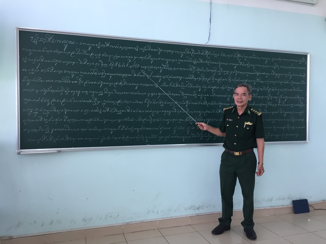 “ លោកគ្រូខ្មែរ” គឺជាឈ្មោះ ជាទីស្រឡាញ់ដែលសិក្ខាកាមជាច្រើនជំនាន់បានហៅអតីតយុទ្ធជន Tran Quang Du - ជាយុទ្ធជនអងអាចក្លាហានមួយរូបនៃកងទ័ពការពារព្រំដែនវៀតណាម។ ផ្ទះរបស់លោកគ្រូដែលមានអាយុកាលជាង ៤០ ឆ្នាំ បានផ្សាភ្ជាប់ភារកិច្ចបណ្ដុះពន្លកមិត្តភាពវៀតណាម - កម្ពុជាស្ថិតនៅផ្លូវ Nguyen Van Cong សង្កាត់ទី ៣ ខ័ណ្ឌ Go Vap ទីក្រុងហូជីមិញ។ លោកបានចូលជួរកងទ័ពកាលពីខែកញ្ញា ឆ្នាំ ១៩៧៨ បន្ទាប់ពីរយៈពេលហ្វឹកហាត់រហូតដល់ខែកុម្ភៈឆ្នាំ ១៩៧៩ លោក រួមជាមួយយុទ្ធមិត្តបានឈរជើងនៅតាមជួរភ្នំដងរ៉ែក។ ចាប់ពីពេលនេះមក ក្នុងដំណើរការតស៊ូ និងធ្វើការនៅកម្ពុជា លោកបាន ប្តេជ្ញាចិត្តសិក្សារៀនសូត្រភាសាខ្មែរដើម្បីសហការប្រយុទ្ធ និងជួយប្រជាជនកម្ពុជាធ្វើផលិតកម្ម ក៏ដូចជាដើម្បីឃោសនាដល់ប្រជាជនធ្វើបដិវត្តផងដែរ។ ឆ្លងកាត់ការលំបាកជាច្រើនក៏ដោយ ប៉ុន្តែយុទ្ធជនរូបនេះនៅតែបំពេញល្អភារកិច្ច ព្រមទាំងសិក្សាភាសាខ្មែរ។ លោកបានសំណេះសំណាលថា៖ “ក្នុងឆ្នាំ ១៩៨០ ខ្ញុំពិតជាមានសំណាងល្អណាស់ ដោយត្រូវបានបក្ស និងរដ្ឋ ផ្ដល់ការយកចិត្តទុកដាក់ជូនកូនសៀវភូមិមួយក្បាល ដែលបានសរសេអក្សរខ្មែរ។ ទោះបីជាជួបការលំបាកជាច្រើនពោលគឺត្រូវប្រយុទ្ធផង និងជួយភាគីមិតផង ប៉ុន្តែខ្ញុំបានប្រើប្រាស់កូនសៀវភៅនេះដើម្បីសិក្សារៀនសូត្រភាសាខ្មែរទាំងយប់ទាំងថ្ងៃ។ នាគ្រានេះនៅកម្ពុជាគឺ គ្មានវត្តអារ៉ាម គ្មានសាលារៀន គ្មានផ្សារ គ្មានលុយកាក់ ពោលគឺប្រទេសទាំងមូលគឺជាម៉ាស៊ីនសង្រ្គាមតែប៉ុណ្ណោះ។ ដូច្នេះហើយ ក្នុងការសិក្សាភាសាខ្មែរខ្ញុំជួបការលំបាកច្រើនណាស់ ដោយសារគ្មានប៊ិចសរសេរឡើយ ហើយខ្ញុំត្រូវសរសេរលើដី បន្ទាប់មកពឹងមិត្តភក្តិកម្ពុជាជួយពន្យល់ឲ្យផងដែរ”។