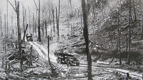 ដឹកជញ្ជូនទំនិញទៅកាន់សមរភូមិភាគខាងត្បូងវៀតណាមតាមផ្លូវ Truong Son ខាងលិច។ |