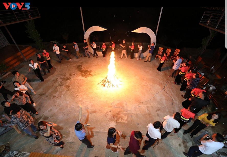 ទិដ្ឋភាពសប្បាយរីករាយរបស់អ្នកស្រុក និងអ្នកទេសចរនៅភូមិ Vang Pheo (រូបថត៖ Ngoc Anh/VOV ៥)