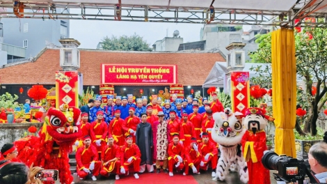 [VOVWORLD] - 3월 31일 오전(음력 2월 13일), 하노이 옌호아(Yên Hòa)동 하옌꾸옛(Hạ Yên Quyết) 마을은 성황신을 사당으로 다시 모시는 성황 귀궁 의례를 거행했다.