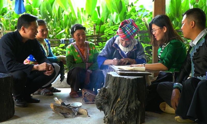 라이쩌우 지방정부는 허몽족 가족들이 젊은 세대에게 전통 공예를 전수하도록 선전하고 있다. |