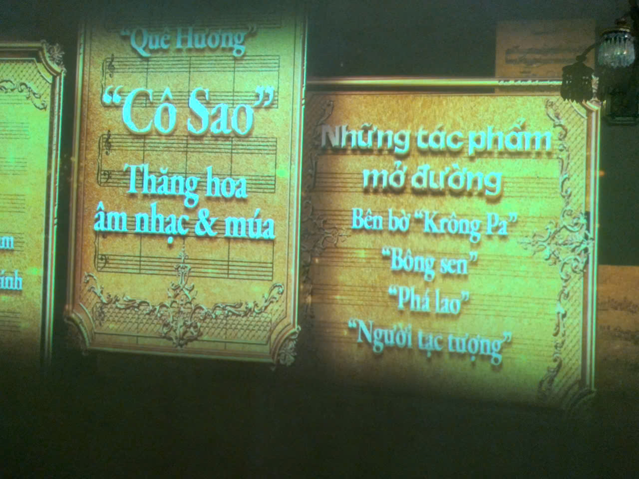 오페라, 연극, 까이르엉, 무용 음악 공연 등이 조명 기술로 재현된다.
