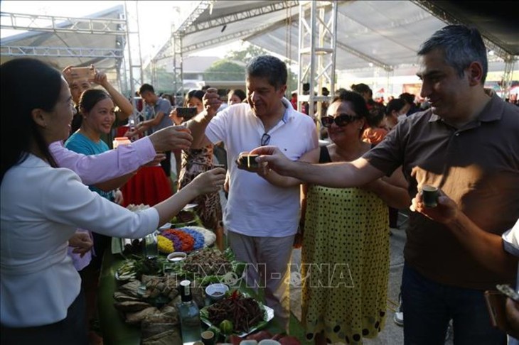 ![]() 각종 민속놀이 활동 (사진: 베트남통신사 Nam Suong) 뚜옌꽝성 럼빈(Lâm Bình)현 특산품인 옥수수 효모, 나뭇잎 효모로 만든 술을 즐길 수 있다. |