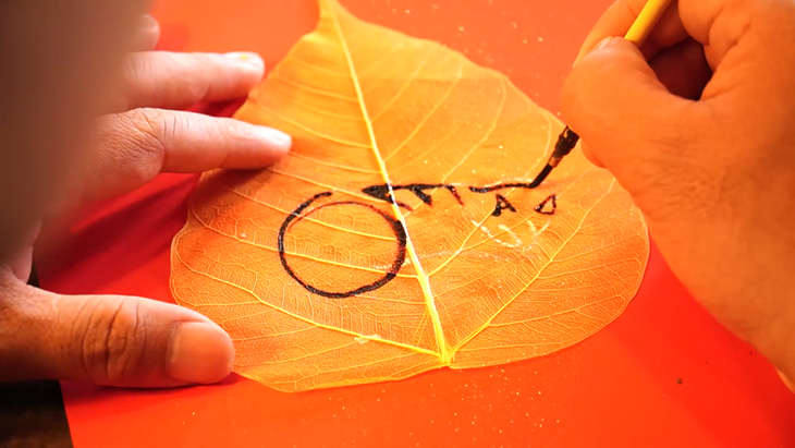 보리순 나뭇잎은 담금질, 문지르기, 염색 등 여러 단계를 거쳐야 그 위에 그림을 그릴 수 있다. (사진: kinhtedothi.vn)