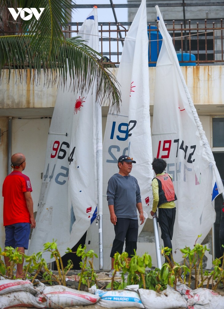 ![]() 어린 사일링 팀의 구성 요소는 전문가 1명, 코치 2명, 선수 6명으로 구성되어 있다. 이와 함께 다낭, 호찌민, 하이퐁, 꽝빈 등 선수단과 함께 훈련하는 부대가 있다. 사진: 응우옌 라 감독은 훈련에서 한국 전문가가 제시한 과제를 수행하는 선수들을 바짝 따라다녔다. |