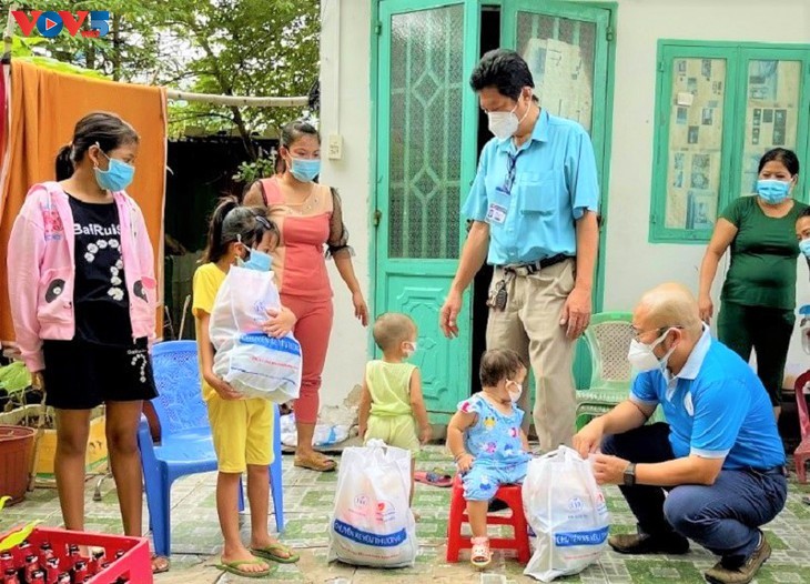 하루 동안 50개 정도의 월병을 만들어 몇 가지 생필품과 함께 동다군 반쯔엉동과 바딘동의 격리구역 주민들에게 나누어주었다. |