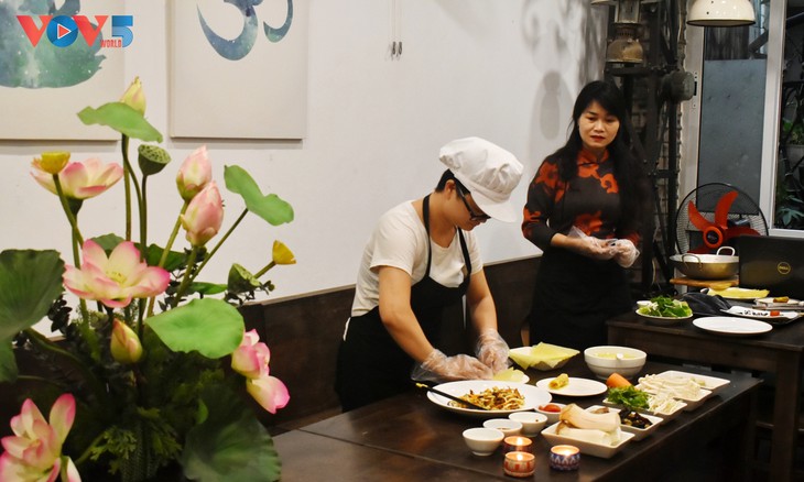 우리마을 채식식당의 대표 메뉴는 스프링롤, 과일샐러드, 무침, 순대, 텁튀엔롤, 전통롤 등이다. 응우옌 히엔 씨는 입맛이 까다로운 사람들도 만족시킬 수 있는 맛있는 채식 요리를 만들기 위해서는 무엇보다도 요리사의 차분한 마음을 유지해야 한다고 말했다.