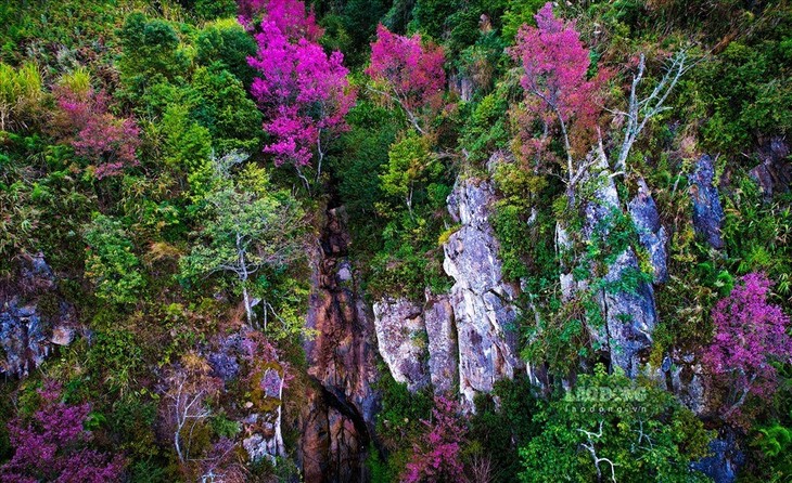 | 베트남의 벚꽃보다 떠 자이 꽃의 색깔이 더 진하고 빨간 꽃술도 더욱 길다. (사진: Dinh Tuan/VOV) |