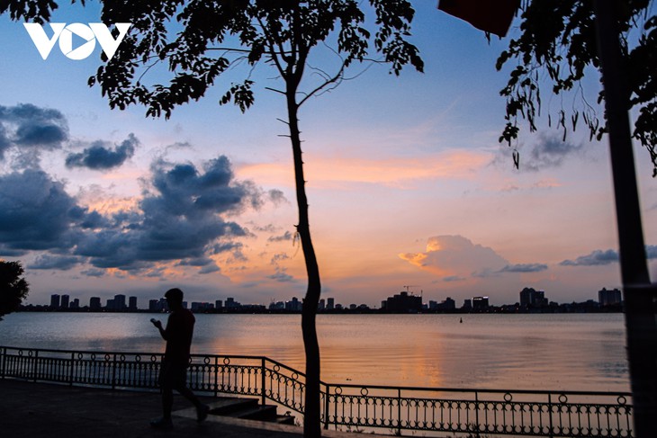 | 서호는 번잡한 하노이 도심 속에서 가장 아름다운 황혼을 구경할 수 있는 곳이다. 해질녘이 되면 많은 사람들이 이곳을 찾는다. |