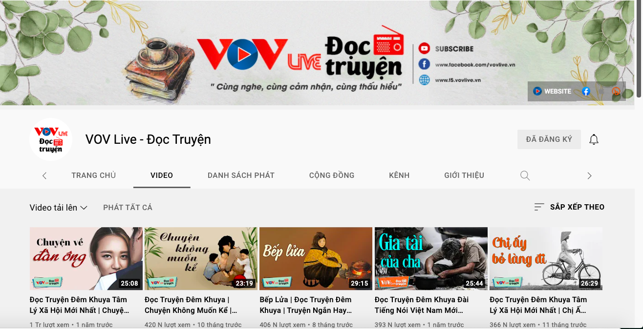 베트남의 소리 라디오 방송국의 브랜드가 된 ‘시사 트렌드’, ‘사랑의 창’, ‘심야 스토리텔링’, ‘민요 학습’, ‘젊은 음악 잡지’ 등 프로그램 외에도 VOV 라이브 채널은 매일 밤 10시에 ‘숙면을 위한 10분 스토리’라는 프로그램을 라이브로 진행한다. 10~15분 가량 부드러운 배경음악 위에 일상, 가정 행복 등에 대한 이야기를 나눈다. 유튜브에 직접 접속하지 않더라도 VOV 라이브 앱을 통해 청취가 가능하다. 청취자와 구독자의 수는 매달 평균 30% 증가하고 있다. 동시 청취자 수천 명을 유치하는 프로그램도 있다. VOV 라이브를 애청하는 한 명 청취자는 다음과 같이 밝혔다.