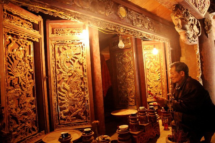 대문을 지나서 큰 연못을 볼 수 있다. 그 다음에 의문 (宜門)이며 양쪽에 좌무 (左廡) 및 우무 (右廡) 건물이다. 가운데가 서낭당의 주요 공간이며 오른쪽은 일년 내내 항상 푸른 물이 가득 차 있는 옛 우물이 있다. 의문 (宜門) 후편에 넓은 마당이 있다. 봄이 오면 축제가 열리는 곳이며 제례를 지낼 때 이용되는 공간이다. 떠이당 (Tây Đằng) 서낭당 관리자 쩐득따이 (Trần Đức Tài)는 다음과 같이 밝혔다.