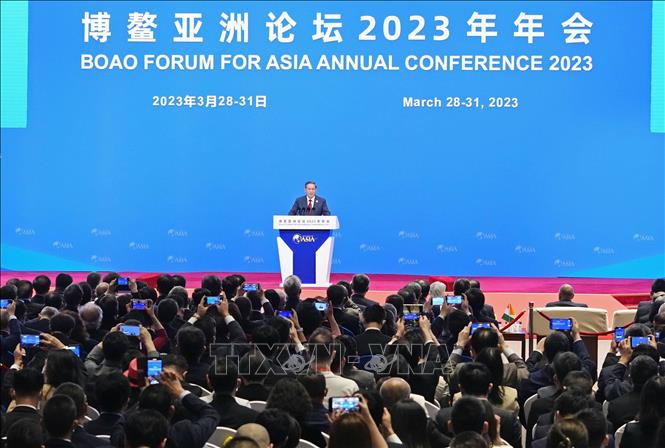 중국 하이난섬에서 개막한 '단결과 협력, 불확실한 세계 속 발전 공감대 모드자'를 주제로 2023 보아오포럼 [사진:교도/ 베트남통신사] |