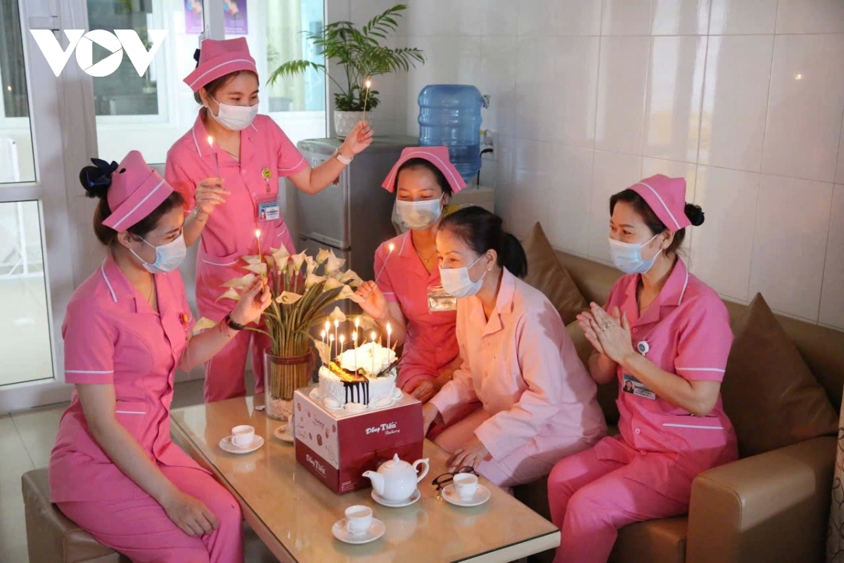 병원에서 치료 받는 한 명의 환자에게 생일 축하해 주는 다낭시 시립 종합병원 의료진들 |