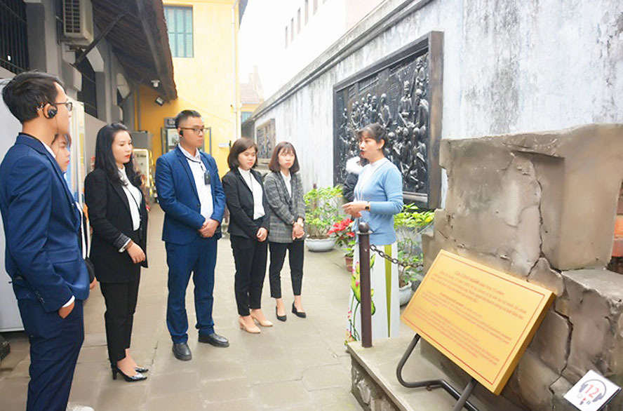 하노이 화로 유적지에서 자동 설명 시스템을 이용하는 방문객 [사진: hanoimoi.com]