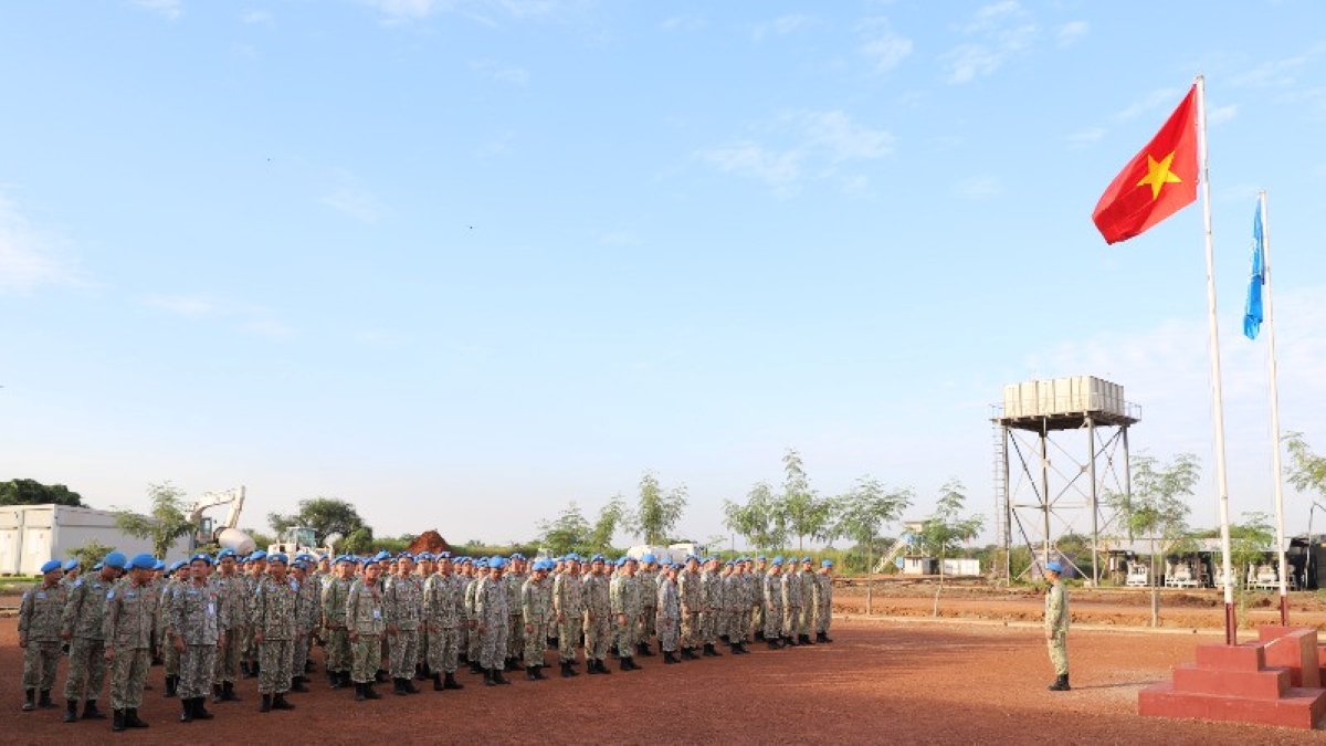 금성홍기는 아프리카에서 활동하는 베트남 평화유지군 파병단 본부 위에서도 나부끼며, 베트남이 세계 평화 수호 임무에 참여하고 있음을 알렸다. (사진: 남수단 유엔 평화유지군 임무단) |