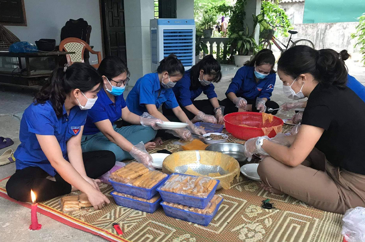 꽝빈성 청년단은 ‘짜오 까인 꽝빈 (Cháo Canh Quảng Bình) - 격리자를 위한 사랑의 조식’을 준비하고 있다. [사진: baoquangbinh.vn]