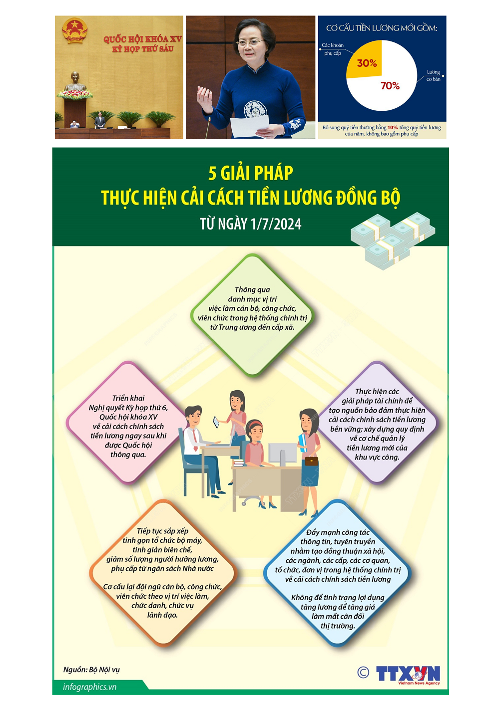 고용 포지션에 따른 급여정책의 전반적인 개혁이 2024년 7월 1일부터 시행될 예정이다. 해당 정책이 시행되면 공무원의 급여가 현재 급여보다 낮지 않도록 직급에 따라 급여 정책이 전반적으로 개혁된다. 해당 정책의 최우선 목표는 △급여는 근로자와 가족의 삶을 보장하는 주요 수입원이 되는 것 △인적자원 개발에 투자하기 위해 급여를 제대로 지급하는 것 △노동 생산성과 작업 효율성을 높이고 사회진보와 정의 실현, 정치‧사회 안정 보장 등을 하는 데 기여하는 것 △지속가능한 발전 및 효과적인 성장 촉진 등이다.