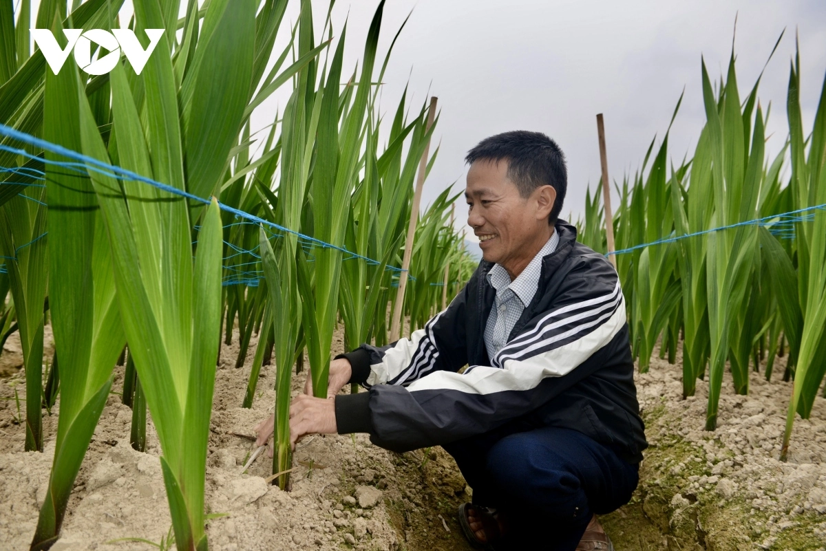 “이것은 베트남만에 있는 글라디올러스 꽃입니다. 저희는 이 종자를 사서 육종해서 다른 사람들에게 반값 정도로 팔았습니다. 육종된 꽃이 매우 잘 자라고 줄기와 잎사귀 빛깔도 좋습니다. 100그루를 심으면 한 그루만 죽습니다. 하지만 예전에 재배하던 토종 품종은 생존 비율이 80-90%에 불과했습니다. 해외에서 가져온 6종의 글라디올러스도 저희가 육종해 재배한 꽃보다 효율이 낮습니다.”