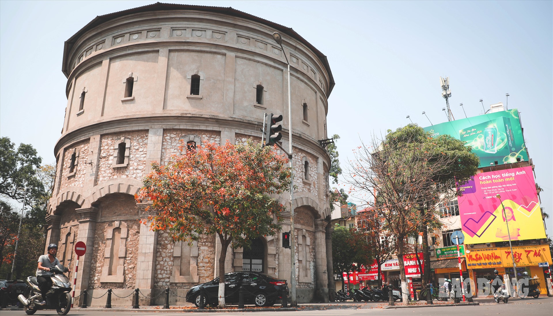 응옥: 저희가 소개해 드리고 싶은 마지막 곳은 “하노이 내 작은 파리”라고 불리는 항더우 (Hàng Đậu) 물탱크가 있는 곳입니다. 여기는 꽃이 아니라 록븡 (lộc vừng) 나뭇잎으로 유명한데요. 나뭇잎 색깔이 물들면서 서정적인 풍경을 만들어 주기 때문에 사람의 마음을 매혹시키는 것이죠.