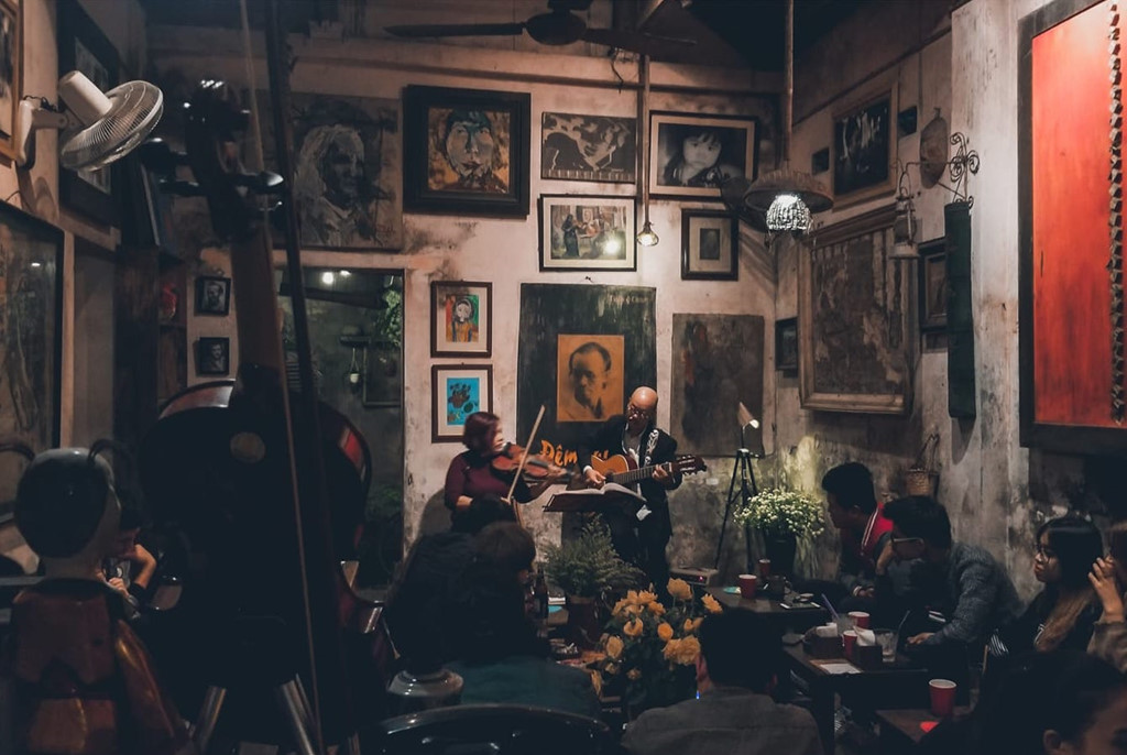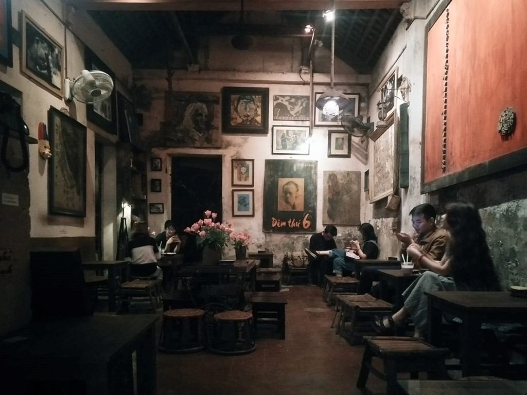 MC2: 마지막으로 바딘 (Ba Đình)군 판 휘 익 (Phan Huy Ích)거리 14번지의 Manzi 카페입니다. 이곳은 아트 갤러리이자 카페로, 현대 미술 공간에서 커피를 즐기고 싶어하는 사람들에게 인기있는 곳이에요.