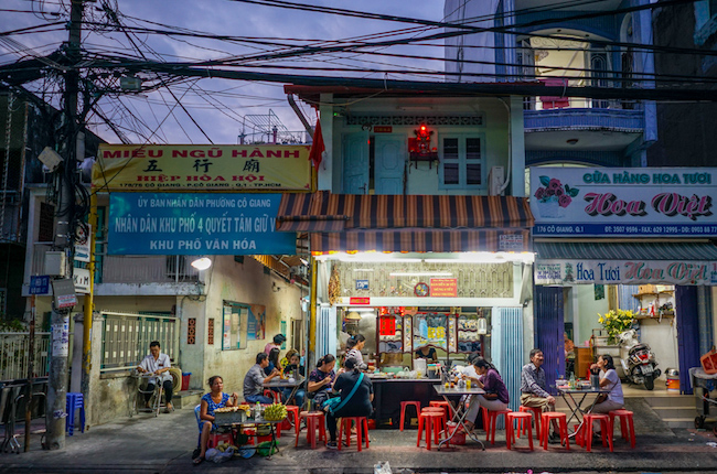 응옥: 마지막은 까오탕 (Cao Thắng) 골목입니다. 여기는 호찌민 시민들에게 잘 알려진 곳인 것 같습니다. 이곳에서는 간단한 길거리 음식부터 지역 특색이 담긴 음식까지 다양하게 즐길 수 있습니다.