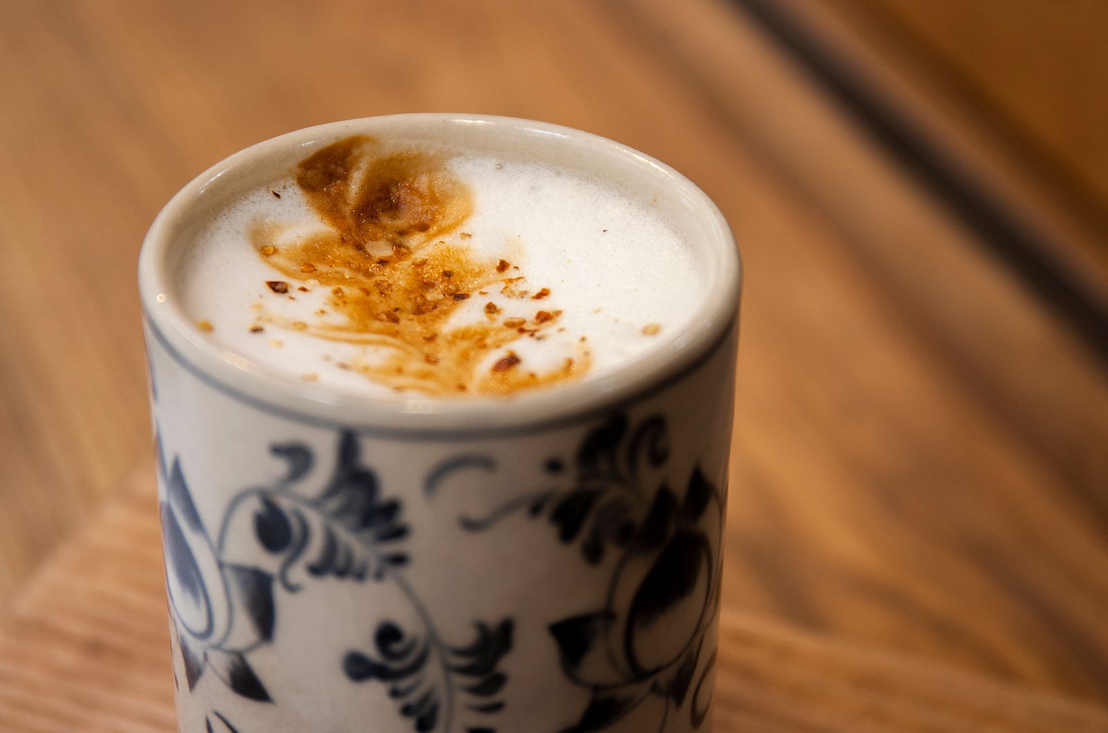 윤지언니: 쌀국수 마끼아또 한잔에는 3층으로 겹겹이 이루어져 있습니다 맨 윗 부분에는 찰랑찰랑하게 얹은 크림이고 그 바로 아래에는 베트남 커피를 가득 넣었고요 그리고 마지막으로는 특별한 쌀국수 시럽입니다. 커피를 더 향기롭게 만들고 쌀국수의 맛과 조화를 이루기 위해 부드러운 크림 위에 붉은 후추를 뿌립니다. 쌀국수 마끼아또 한 모금안에 팔각, 고수, 타이바질, 후추 등 베트남 전통 쌀국수 재료들의 맛을 모두 담고 있는데요 바텐더는 쌀국수 맛이 너무 강하지 않고, 커피 맛을 압도하지 않도록 적당량을 정확하게 조절하여 고객들께 선 보일 것입니다.