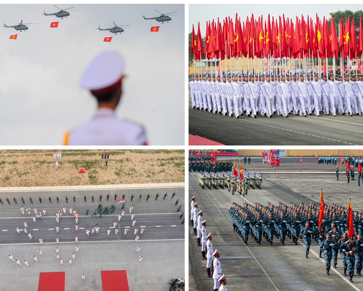 경민: 먼저 열병식 행진 계획을 잘 알아야 할 필요가 있겠죠? 이번 열병식은 총 3 가지 중요한 일정으로 진행될 예정입니다. 4월 25일 예행연습, 4월 27일 전체 리허설, 그리고4월 30일 오전에 바로 본 행사가 진행됩니다. 행진대는 오전 8시에 레주언(Lê Duẩn) 거리에서 출발해 독립궁을 지나고, 남 끼 커이 응이어(Nam Kỳ Khời Nghĩa) 거리에 도달하면 행진대가 두 방향으로 나누어집니다. 오른쪽으로 가는 팀은 호아르 운동장에 집결하고, 왼쪽으로 가는 팀은 똔득탕(Tôn Đức Thắng) 거리로 모인다고 합니다.