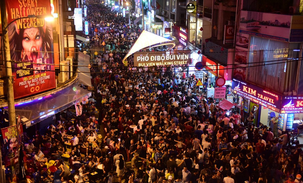 B: 첫번째 장소는 바로 1군에 위치한 Pham Ngu Lao현입니다. 서쪽 방면으로 Bùi Viện, Đề Thám, Phạm Ngũ Lão, Đỗ Quang Đẩu 거리가 있죠, 거리 이름만으로도 아주 익숙하고 신나지 않으세요? 거리의 첫 시작부터 우리는 이곳이 정말 번화하고, 복잡하며, 사람이 많고, 또 밤새 음악이 끊이지 않는, 또 많은 노점들과 식당들이 즐비해 있다는 것을 한 눈에 볼 수 있습니다. .