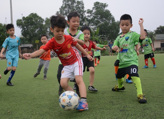 Children play football at the Hanoi-Phu Dong Football Center. (photo: hanoi.qdnd.vn) |