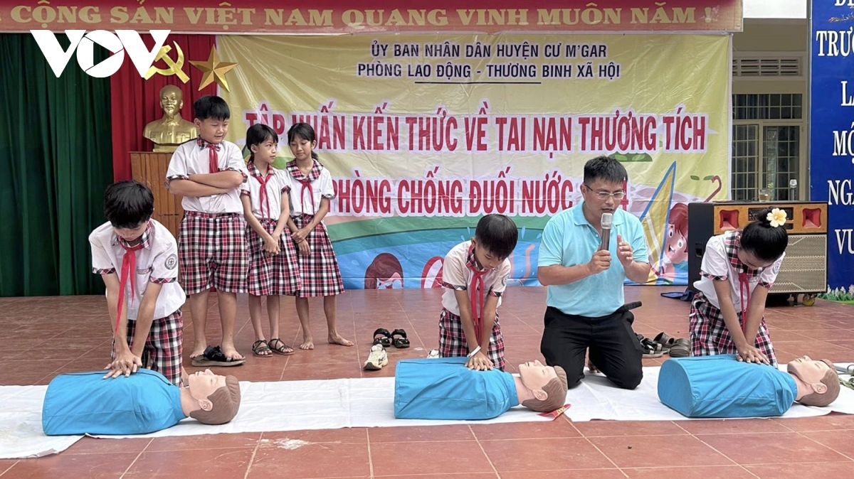 The classes help children stay fit and teaches them swimming skills to prevent drowning accidents. Vo Manh Cuong, a primary school pupil, said he is learning how to swim, how to rescue drowning people, and first aid skills.
