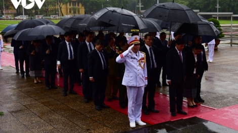 ທ່ານເລຂາທິການໃຫຍ່, ປະທານປະເທດ ລາວ ໄປວາງພວງມາລາຢູ່ສຸສານ ປະທານໂຮ່ຈີມິນ