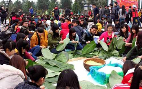 ແຕ່ 7 ໂມງເຊົ້າ, ມີປະມານ 500 ຄົນໄດ້ພາກັນມາເຕົ້າໂຮມຢູ່ສະໜາມຫຼວງ ໝູ່ບ້ານວັດທະນະທຳ-ທ່ອງທ່ຽວບັນດາເຜົ່າຫວຽດນາມ ທີ່ດົງໂມ, ເຊີນໄຕເພື່ອເຂົ້າຮ່ວມການຫໍ່ເຂົ້າຕົ້ມ. ເຂົ້າຮ່ວມລາຍການຫໍ່ເຂົ້າຕົ້ມປີນີ້ ມີບັນດາພຸດທະສາສະນິກກະຊົນຢູ່ວັດ ຟາບເວີນ-ຮ່າໂນ້ຍ, ວັດຄາຍງວຽນ, ຊາວໜຸ່ມເທດສະບານເຊີນໄຕ ແລະ ບັນດາຕາແສງອ້ອມຂ້າງ. ເພື່ອຫໍ່ໄດ້ເຂົ້າຕົ້ມທີ່ແຊບ ແລະ ງາມນັ້ນ, ຄະນະຈັດຕັ້ງໄດ້ເຊື້ອເຊີນບັນດານັກສິລະປະການໃນໝູ່ບ້ານອາຊີບ ເອືອກເລ້, ຕາແສງເຕີນເອືອກ, ຮ່າໂນ້ຍ ມາແນະນຳວິທີຫໍ່ເຂົ້າຕົ້ມ. ທຸກໆຄົນຕ່າງກໍເບີກບານມ່ວນຊື່ນ, ຄົນລະວຽກ, ຜູ້ລ້າງໃບຕອງຈິງ, ຜູ້ເຊິເຂົ້າ, ຖົ່ວຂຽວ, ຜູ້ຕັດຊອຍຊີ້ນໝູ…ນ້ອງເຈີນຈຸກລິງ, ເປັນນັກຮຽນທີ່ໄດ້ເຂົ້າຮ່ວມລາຍການຫໍ່ເຂົ້າຕົ້ມ ເວົ້າວ່າ :