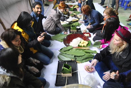 ![]() ຊາວຕ່າງປະເທດຮຽນວິທີຫໍ່ເຂົ້າຕົ້ມ