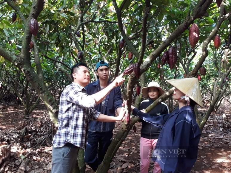 ທ່ານ ເຈືອງງອກກວາງ (ຊ້າຍ) ແນະນຳຊາວກະສິກອນເຕັກນິກປູກຕົ້ນກາກາວ (ພາບ: ເຈືອງງອກກວາງ)