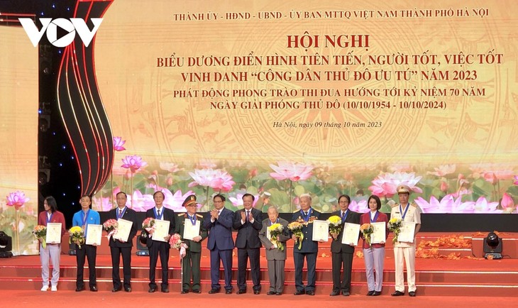ຕອນເຊົ້າວັນທີ 9 ຕຸລາ, ຢູ່ຮ່າໂນ້ຍ, ນະຄອນ ຮ່າໂນ້ຍ ໄດ້ຈັດກອງປະຊຸມຍ້ອງຍໍຊົມເຊີຍແບບຢ່າງທີີ່ກ້າວໜ້າ, ວຽກດີຄົນເດັ່ນ; ເຊີດຊູພົນລະເມືອງນະຄອນຫຼວງດີເດັ່ນປີ 2023 ແລະ ປຸກລະດົມການແຂ່ງຂັນມຸ່ງໄປເຖິງການສະເຫຼີມສະຫຼອງ 70 ປີແຫ່ງວັນປົດປ່ອຍນະຄອນຫຼວງ (10/10/1954 – 10/10/2024).