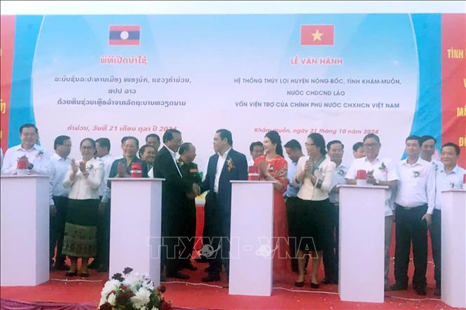 ພິທີນຳລະບົບຊົນລະປະທານເມືອງ ໜອງບົກ, ແຂວງ ຄຳມ່ວນ ເຂົ້າເຄື່ອນໄຫວ (ພາບ: TTXVN)