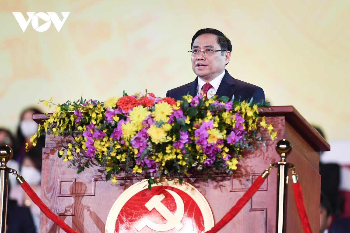 “ນຳມະຕິກອງປະຊຸມໃຫຍ່ຄັ້ງທີ 13 ຂອງພັກເຂົ້າສູ່ຊີວິດຕົວຈິງໂດຍໄວ; ສູ້ຊົນນຳຫວຽດນາມ ໃຫ້ກາຍເປັນປະເທດພັດທະນາຕາມກຳນົດທິດສັງຄົມນິຍົມໂດຍໄວ. ໜ້າທີ່ຈຸດສຸມໃນຕໍ່ໜ້າຂອງທົ່ວພັກ, ທົ່ວປວງຊົນ, ທົ່ວກອງທັບໃນຈຸດເວລານີ້ແມ່ນ ທັງປ້ອງກັນ, ສະກັດກັ້ນໂລກລະບາດໂຄວິດ-19, ແກ້ໄຂຜົນຮ້າຍຢ້ອນຫຼັງຈາກໄພທຳມະຊາດ, ທັງຍູ້ແຮງການຜະລິດ, ວຽກງານພັດທະນາເສດຖະກິດສັງຄົມປີ 2021 ນັບແຕ່ຊຸມເດືອນຕົ້ນປີ”.