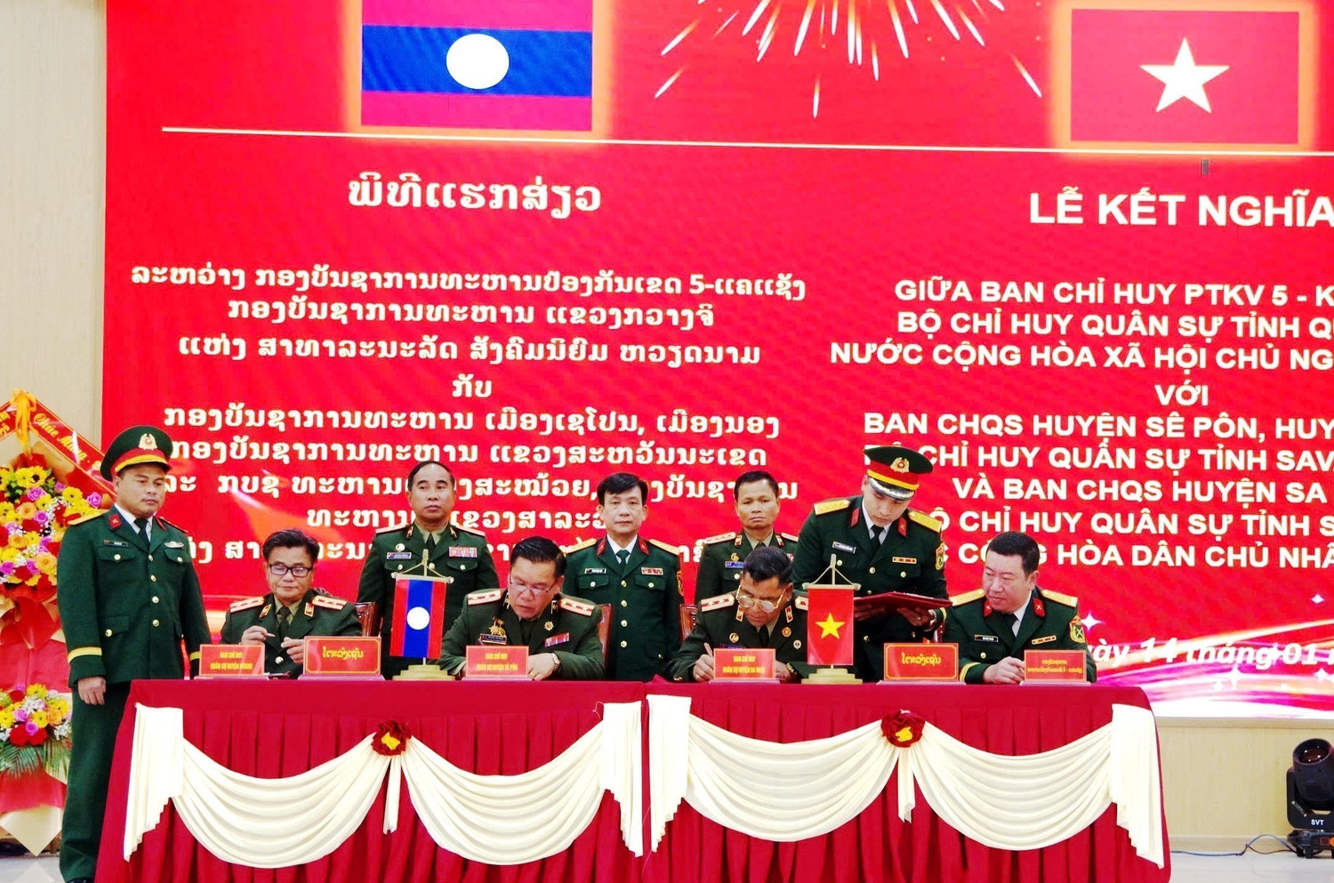 ວັນທີ 15 ມັງກອນ, ຄະນະບັນຊາການປ້ອງກັນຕົວເຂດ 5 - ແຄແຊັງ ໄດ້ສົມທົບກັບຄະນະບັນຊາການທະຫານບັນດາເມືອງ ເຊໂປນ, ນອງ, ກອງບັນຊາການທະຫານແຂວງ ສະຫວັນນະເຂດ ແລະ ຄະນະບັນຊາການທະຫານເມືອງ ສະໝວ້ຍ, ກອງບັນາຊາການທະຫານແຂວງ ສາລະວັນ (ລາວ) ໄດ້ຈັດພິທີລົງນາມແຮກສ່ຽວ ແລະ ລົງນາມລະບຽບຂໍ້ກຳນົດສົມທົບກັນເຄື່ອນໄຫວ.