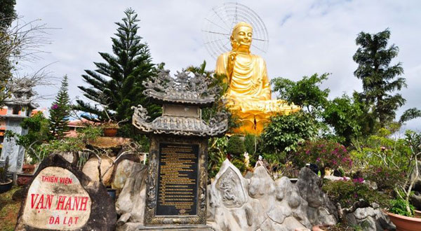 ຮູບປັ້ນພະພຸດທະເຈົ້າມືຈັບດອກບົວ ມີລວງສູງ 24 ແມັດ, ມີນ້ຳໜັກ 60 ໂຕນ. ໃນບໍລິເວນຂອງວັດກໍ່ມີສິ່ງໜຶ່ງພິເສດທີ່ສຸດ ນັ້ນແມ່ນຢູ່ໃນສອງຫ້ອງນ້ອຍ ຢູ່ຄຽງຂ້າງສວນຕົ້ນໄມ້ປະດັບ, ຢູ່ແຫ່ງນີ້ພະພຸດທະຮູບໄດ້ປົກຄຸມຄວາມເຢັນ ໃຫ້ແກ່ບັນດາໂງ່ນຫີນແກ້ວ ເຊິ່ງເຈົ້າອະທິການວັດໄດ້ເກັບກຳ ໃນໄລຍະ 30 ປີທີ່ຜ່ານມາ. ບໍ່ພຽງແຕ່ແມ່ນທຳມະຊາດດົນບັນດານໃຫ້ເທົ່ານັ້ນ, ສິ່ງທີ່ເປັນໜ້າຈັບໃຈກວ່ານີ້ອີກ ນັ້ນແມ່ນບັນດາຮູບພາບ, ບັນດາແຜນທີ່ຂອງປະເທດ ຫວຽດນາມ ດ້ວຍຕົວໜັງສື S ຖືກເຮັດດ້ວຍບັນດາເມັດຫີນແກ້ວຕິດຕໍ່ກັນ. ພະອາຈານໃຫຍ່ ທິກວຽນແທັງ ເວົ້າວ່າ: