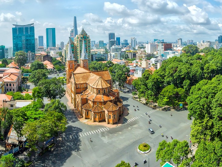 ໂດຍນອນໃນໃຈກາງເມືອງ 1, ນະຄອນ ໂຮ່ຈີມິນ, ໂບດ ດຶກບ່າ ສວຍງາມ, ໃຫຍ່ໂຕມະໂຫຖານ ດ້ວຍສະຖາປັດຕະຍາກຳຂອງ ຝລັ່ງ, ແມ່ນໜຶ່ງໃນບັນດາສັນຍາລັກຂອງນະຄອນ (ພາບ: reatimes.vn)