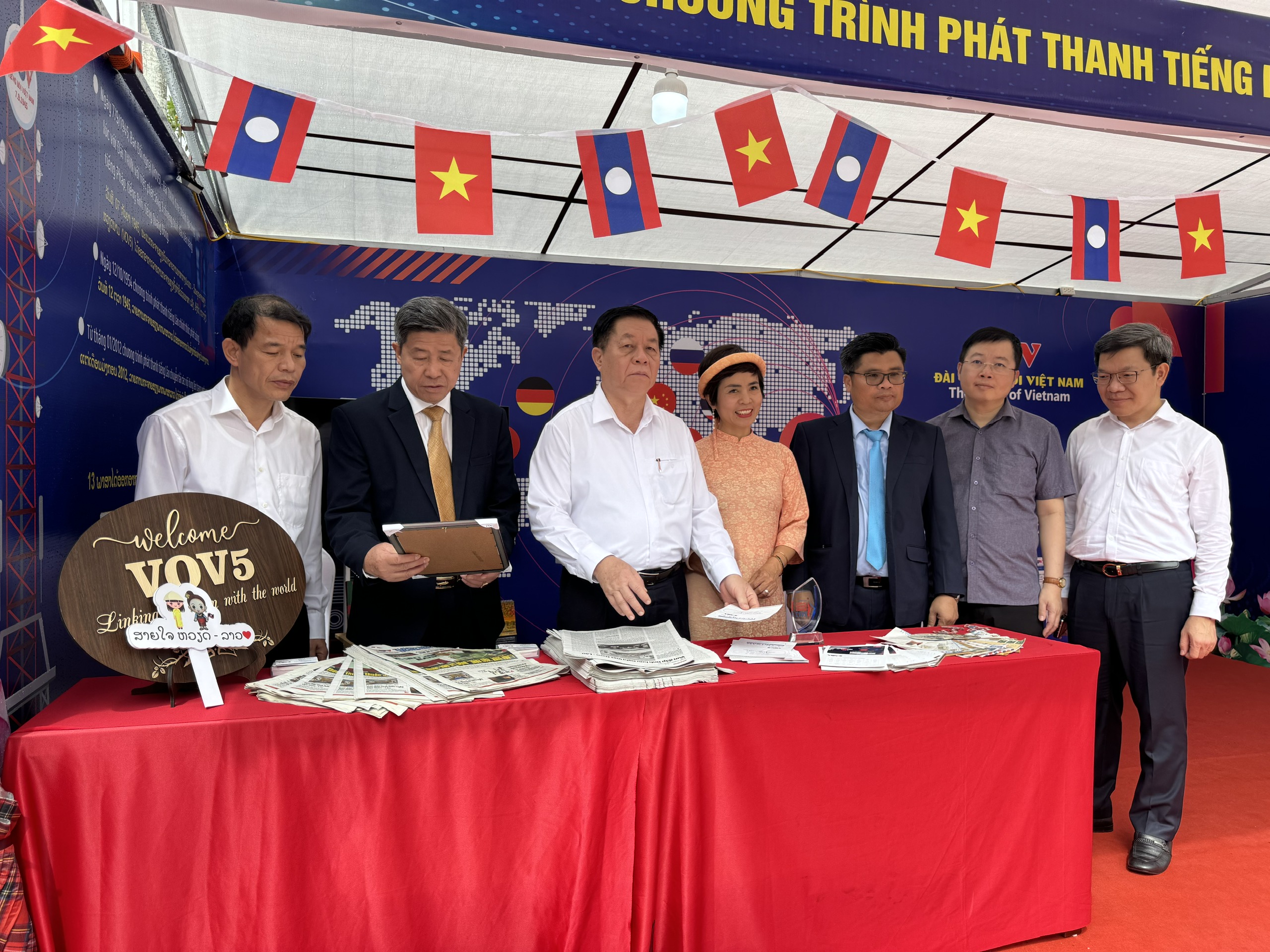 ຄະນະຜູ້ແທນຂອງ ຫວຽດນາມ ແລະ ລາວ ຢ້ຽມຊົມຮ້ານວາງສະແດງຂອງ VOV5