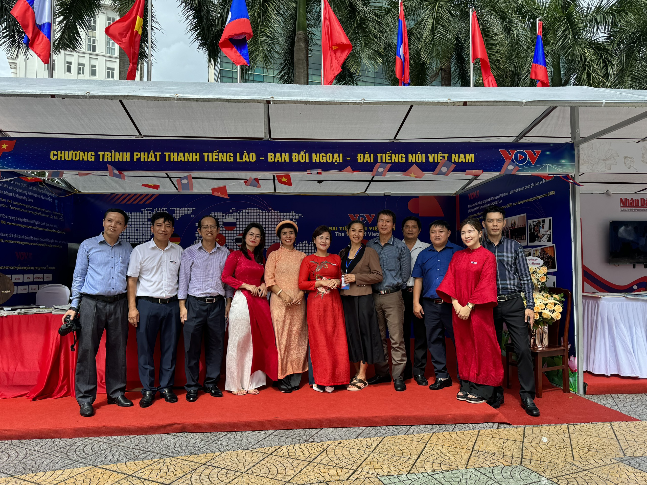 ບັນດາເພື່ອນຮ່ວມງານຂອງສຳນັກຂ່າວສານຕ່າງໆຢູ່ຮ້ານວາງສະແດງຂອງ VOV5