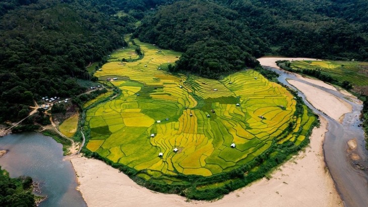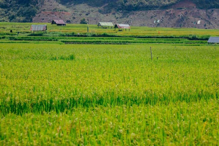| ຖ້າຫາກລະດູເຂົ້າສຸກເຫຼືອງ ຢູ່ໄຕບັກ ມີຄວາມງາມແບບໂຫຍ່ໂຕມະໂຫຖານ ແຕ່ນາຂັ້ນໄດຢູ່ ກອນຕູຣັ່ງ ພັດມີຄວາມງາມແບບລຽບງ່າຍ ແລະ ສະຫງົບ. (ພາບ: sgtiepthi.vn) |