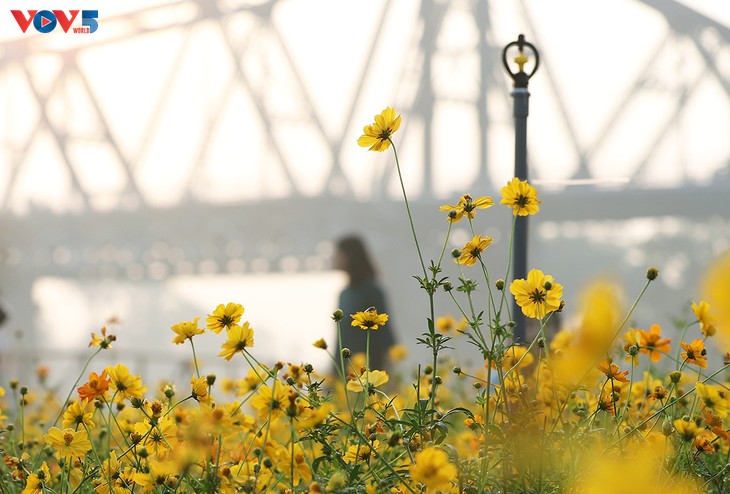 ສວນດອກໄມ້ທີ່ສວຍງາມຢູ່ຕີນຂົວລອງບຽນ ພວມກາຍເປັນສະຖານທີ່ຖ່າຍຮູບໃໝ່ທີ່ໄດ້ຮັບຄວາມນິຍົມຂອງຊາວນະຄອນຫຼວງ.