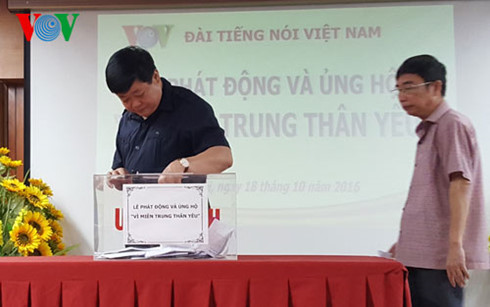 ແລະ ກໍ່ໃນຕອນຕອນເຊົ້າວັນທີ 18/10, ຢູ່ສູນກະຈາຍສຽງແຫ່ງຊາດ 58 ກວ໋ານຊື໋, ຮ່າໂນ້ຍ, ວິທະຍຸກະຈາຍສຽງ ຫວຽດນາມ (VOV) ໄດ້ຈັດຕັ້ງພິທີປຸກລະດົມການບໍລິຈາກ ແລະ ສະໜັບສະໜູນ“ເພື່ອພາກກາງທີ່ແສນຮັກ“. ກ່າວຄວາມເຫັນນະພິທີ, ທ່ານ ຫງວຽນເທ໋ກີ, ຜູ້ອຳນວຍການໃຫຍ່ VOV ສະເໜີບັນດາຫົວໜ່ວຍຂອງ VOV ສືບຕໍ່ປຸກລະດົມພະນັກງານ, ລັດຖະກອນສະໜັບສະໜູນ, ຊ່ວຍເຫຼືອພໍ່ແມ່ປະຊາຊົນພາກກາງທີ່ຖືກຜົນສະທ້ອນຈາກນຳ້ຖ້ວມ. ທ່ານ ເນັ້ນໜັກວ່າ: