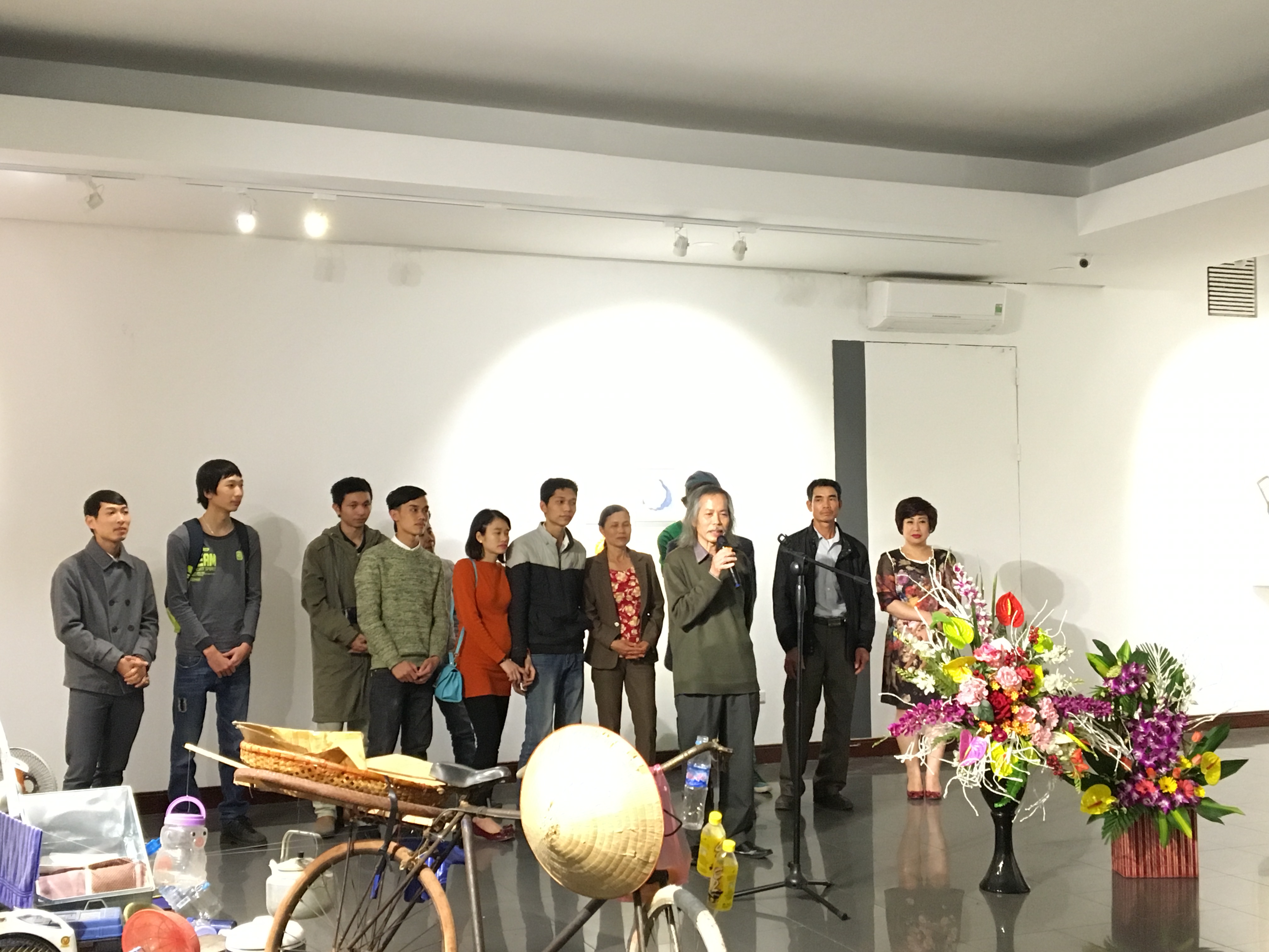ທ່ານ ເລືອງຊວນດ່ວານ - ຮອງປະທານຜູ້ປະຈຳສະມາຄົມວິຈິດສິນ ຫວຽດນາມ ແລະຈິດຕະກອນໜຸ່ມ ຫງວຽນຕ໋ວນຢຸງ ພ້ອມກັບພວກເພື່ອໜຸ່ມທີ່ງານວາງສະແດງ |