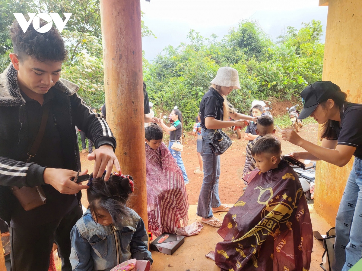 ພວກ ອາວ ອາ ໃນສະໂມສອນ ຕັດຜົມໃຫ້ພວກນ້ອງນ້ອຍ. ພາບ: VOV |