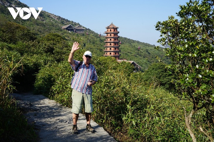 Many foreign tourists share the joy of experiencing the impressive path up Yen Tu mountain.
